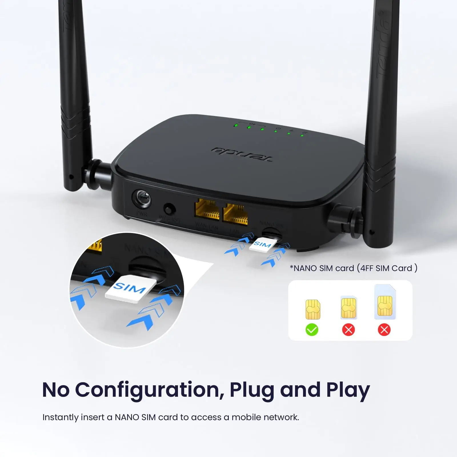 Tenda 4G03 Pro – kompaktne 4G LTE ruuter, mis toetab andmesidekiirust kuni 150 Mbps, võimaldab jagada internetti kuni 32 seadmele ja on varustatud kahe Etherneti pordiga juhtmega ühenduste jaoks.
