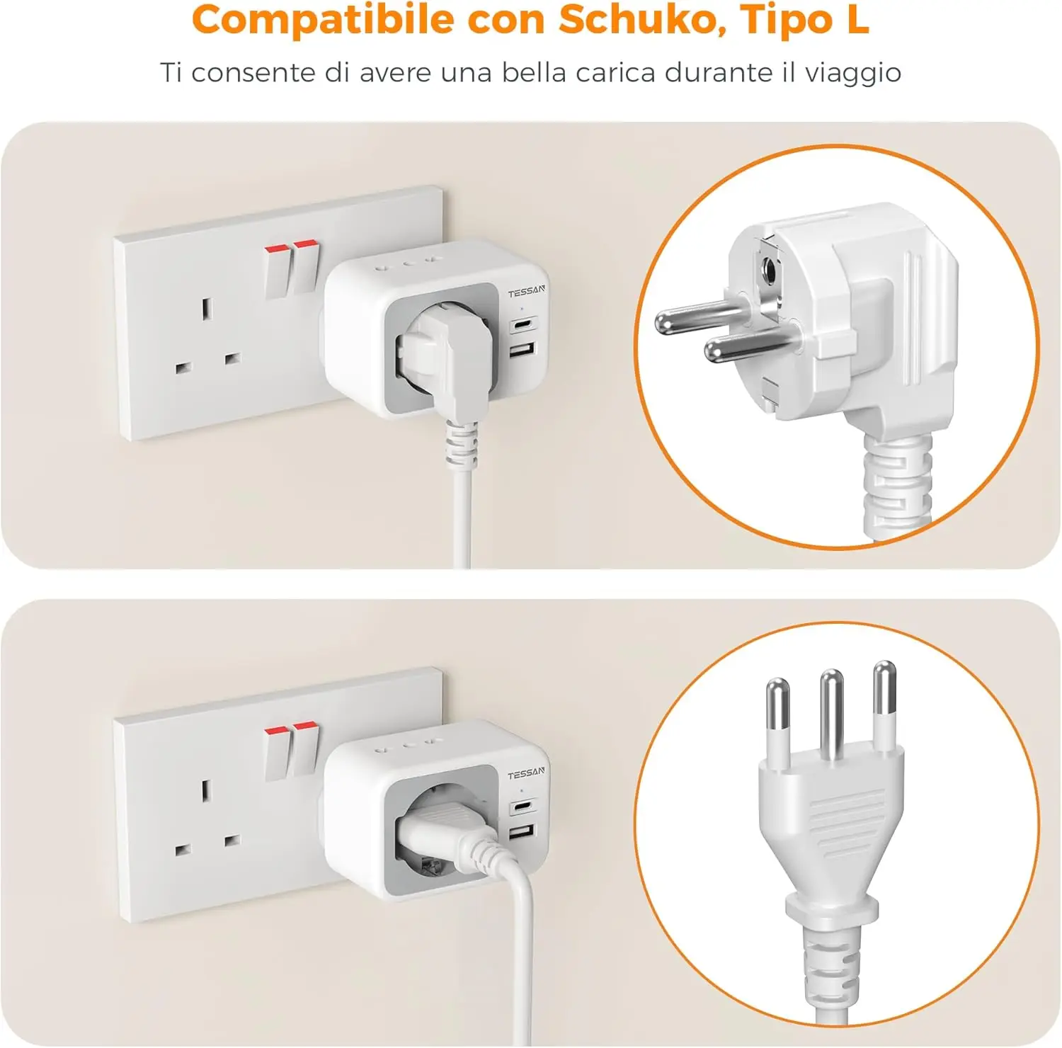 Tessan UK adatper Euroopa ja Itaalia pistikutele