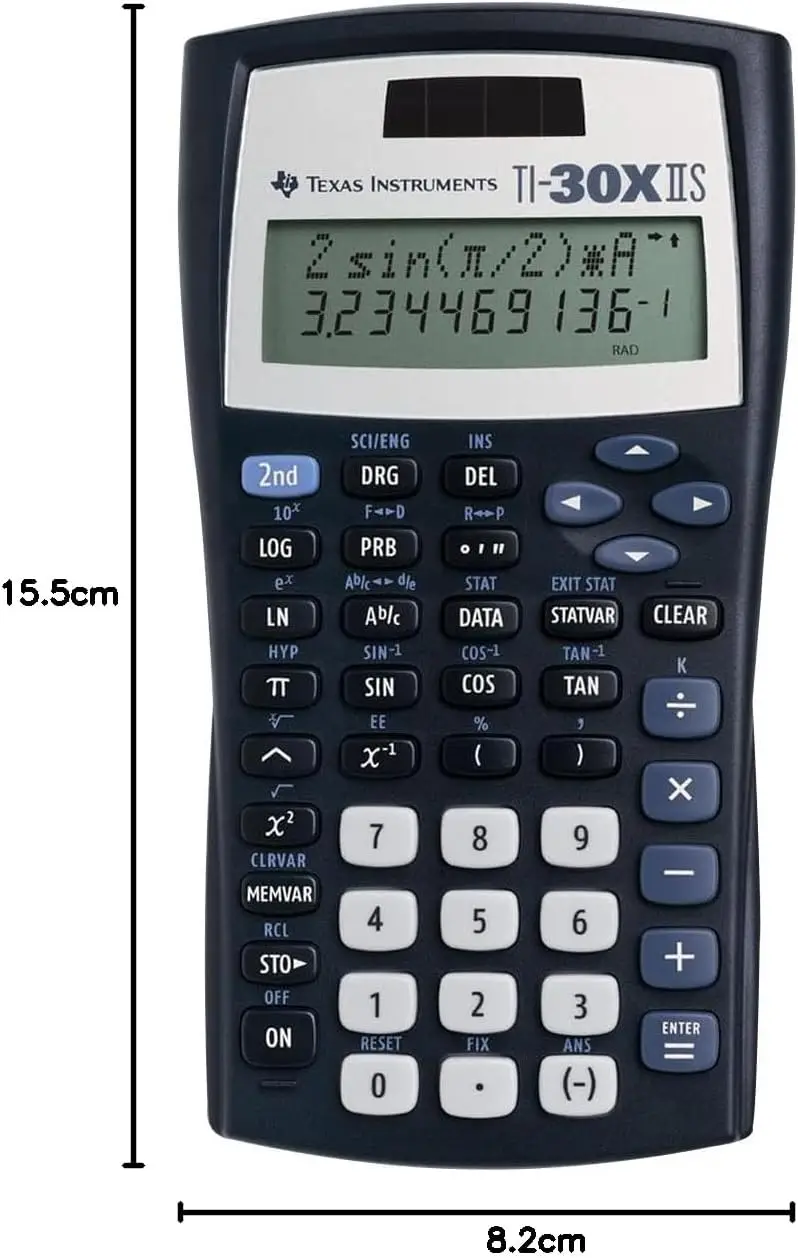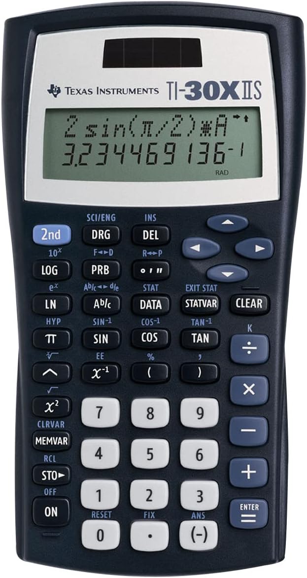 Texas Instruments TI-30 XIIS (Dark Blue) – a two-line scientific school calculator featuring dual solar and battery power along with advanced statistical and scientific functions.