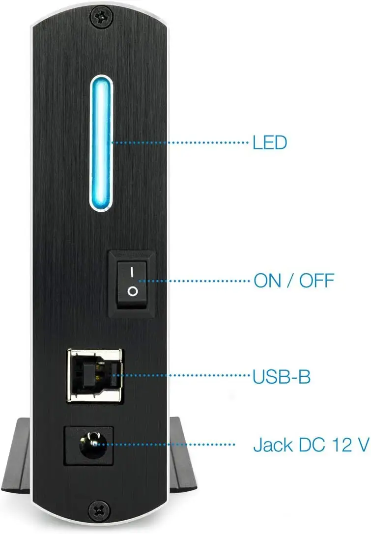 TOOQ TQE-3531B (Black) – a stylish aluminum external enclosure for 3.5" SATA I/II/III hard drives, featuring a high-speed USB 3.0 interface and a convenient LED status display.
