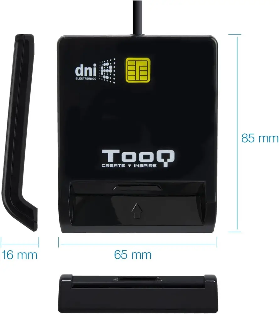 TooQ TQR-211B – USB nutikaardilugeja DNIe ja ISO 7816 kaartide jaoks (T=0/T=1), kompaktne disain, plug & play, ühilduv Windowsi, Mac OS X-i ja Linuxiga.