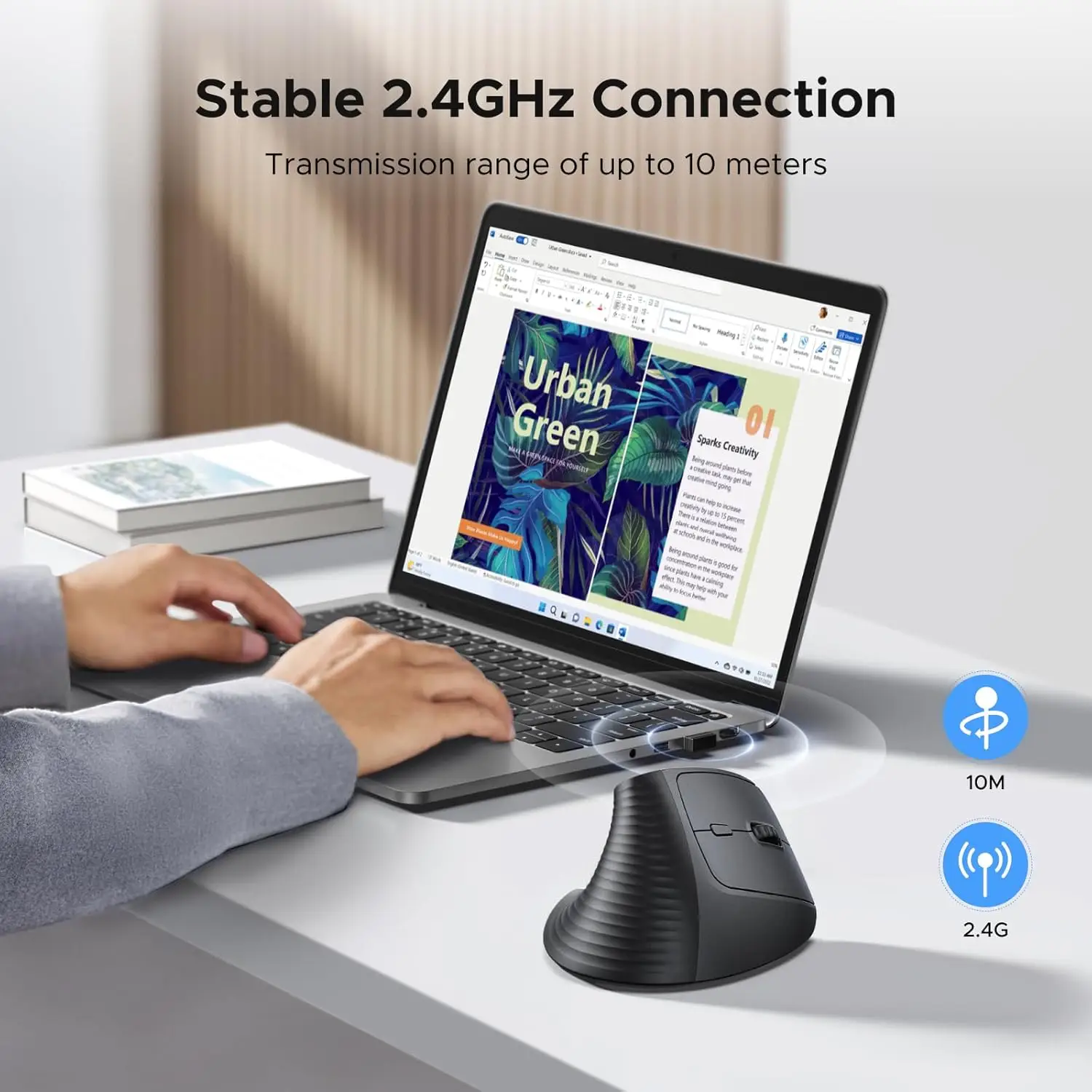 UGREEN 2.4G Ergonomic Vertical Wireless Mouse – vertical design with adjustable sensitivity up to 4000 DPI, designed to reduce wrist strain, compatible with PCs, MacBooks, and laptops across Windows, macOS, and Linux systems.