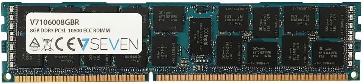 V7 V7106008GBR – an 8GB DDR3 server memory module (1333MHz, PC3-10600) featuring 1.35V low voltage operation and ECC Registered technology for enhanced data integrity in server environments.