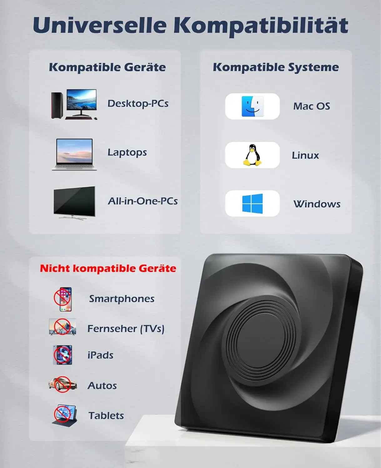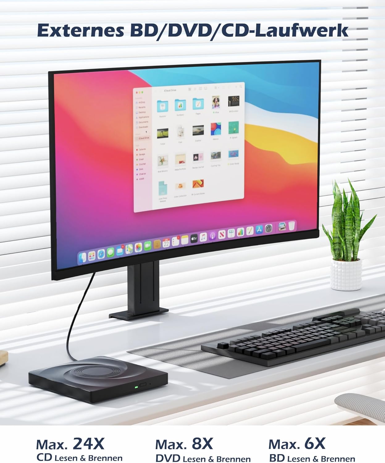 Type-C CD/DVD-kirjutajaga, 3D Blu-ray-draiv, ühildub Windows XP/7/8/10 MacBook sülearvuti ja lauaarvutiga