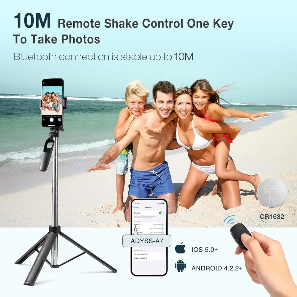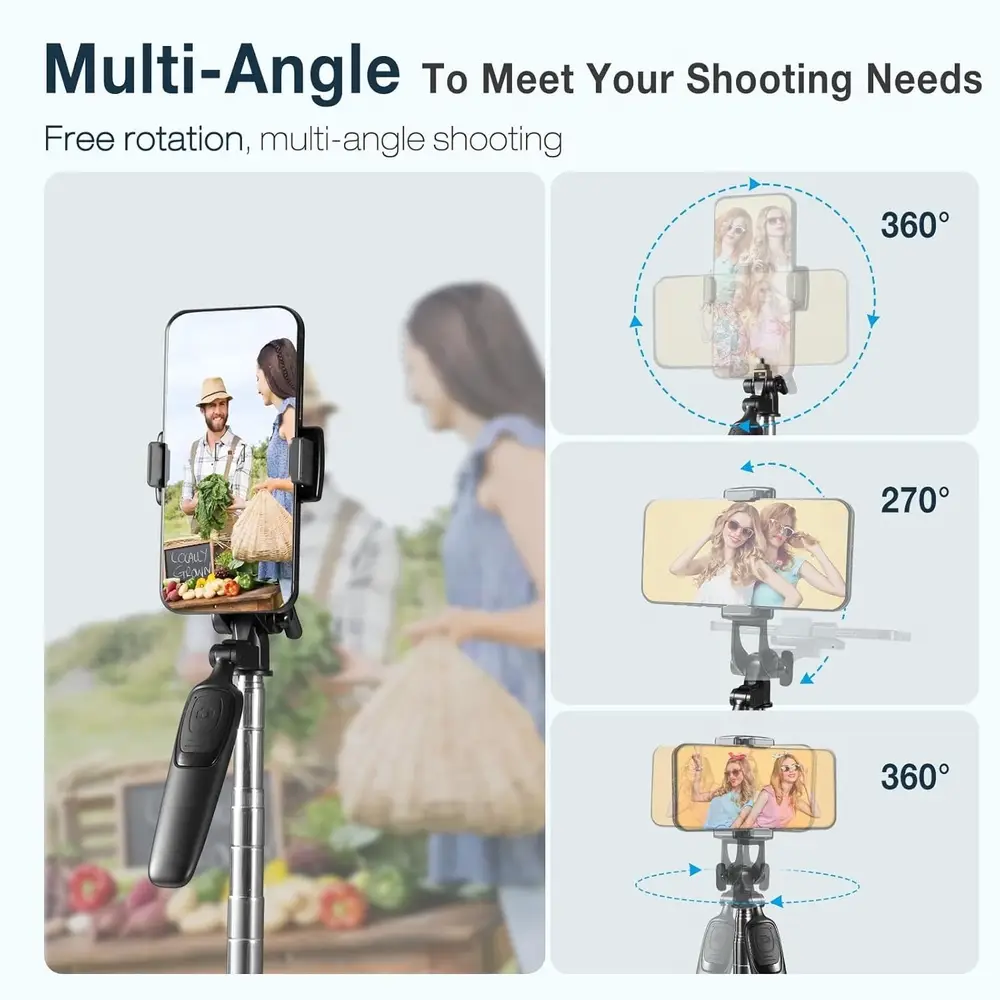 Pikendatav kuni umbes 160 cm, 360° pöörlev pea, universaalne nutitelefoni hoidik, stabiilsust tagav kolmnurkne alus, materjaliks alumiiniumisulamist korpus + silikoon/mittelibisevad jalad, sisseehitatud Bluetooth-pult (≈ 10 m ulatuses), sobib nutitelefonidele ligikaudu 4,7–6,5″, sisaldab ¼″ kinnitust tarvikute jaoks.