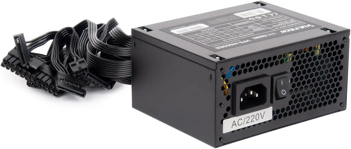 Vultech VPS-M500EB – a 500W ATX power supply unit featuring a 12cm silent cooling fan, stable voltage regulation, and multiple protection mechanisms for everyday PC builds.