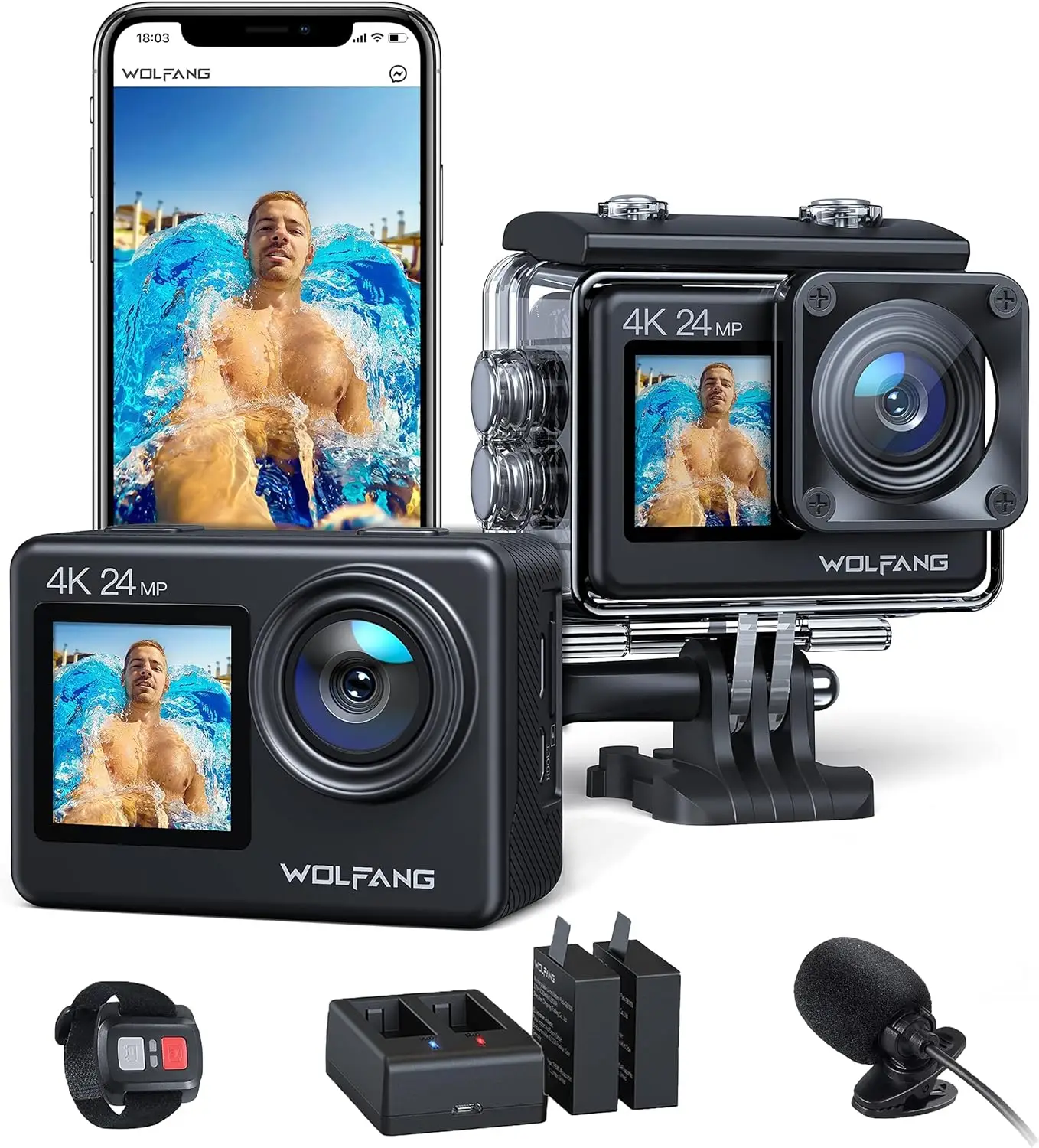 Wolfang GA200 seikluskaamera 4k, Wifi, 24mp. 40m veekindel 2 ekraaniga 170 kraadi lainurk võte.