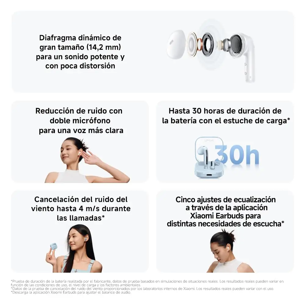 Xiaomi Redmi Buds 6 Active (Blue) – lightweight open-ear style earbuds featuring 14.2mm dynamic drivers, up to 30 hours of battery life, and clear calls with noise-reducing microphones. Type-C Charging not cable included.