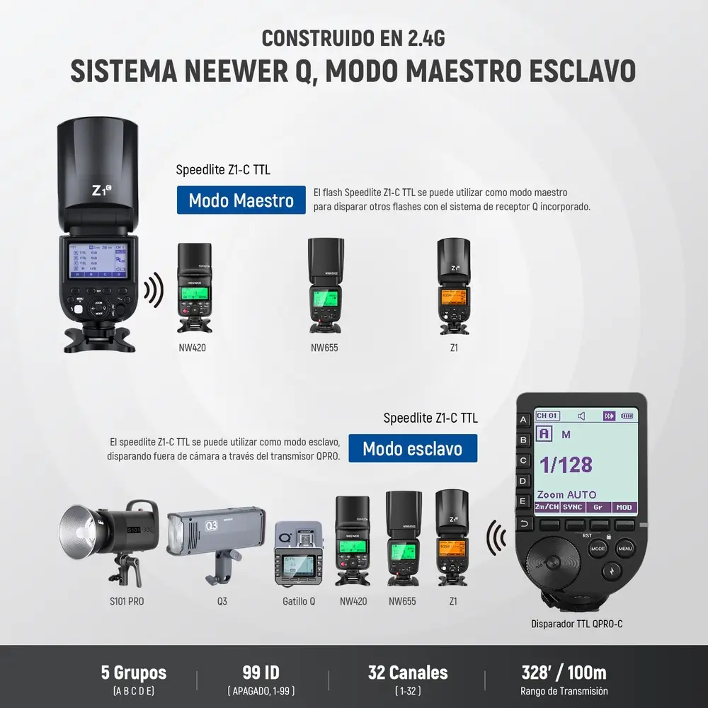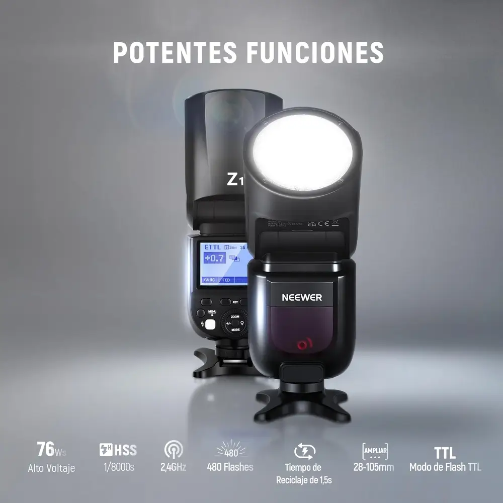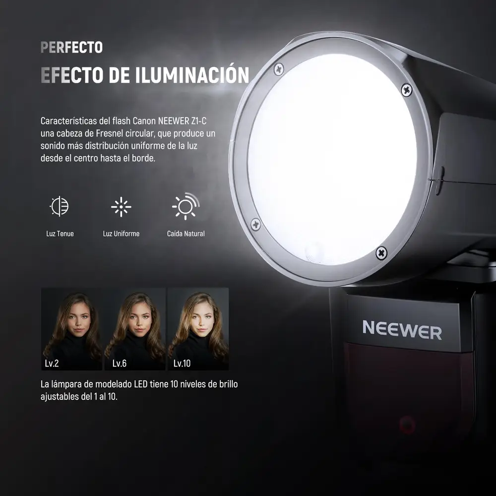 NEEWER Z1-C TTL välk Speedlite Canon DSLR kaameratele, 76Ws 2.4G 1/8000s HSS, 10 taset LED modelleerimisvalgust, 2600mAh Li-Ion aku, 480 täisvõimu väljundit, 1.5s kiire taastumine